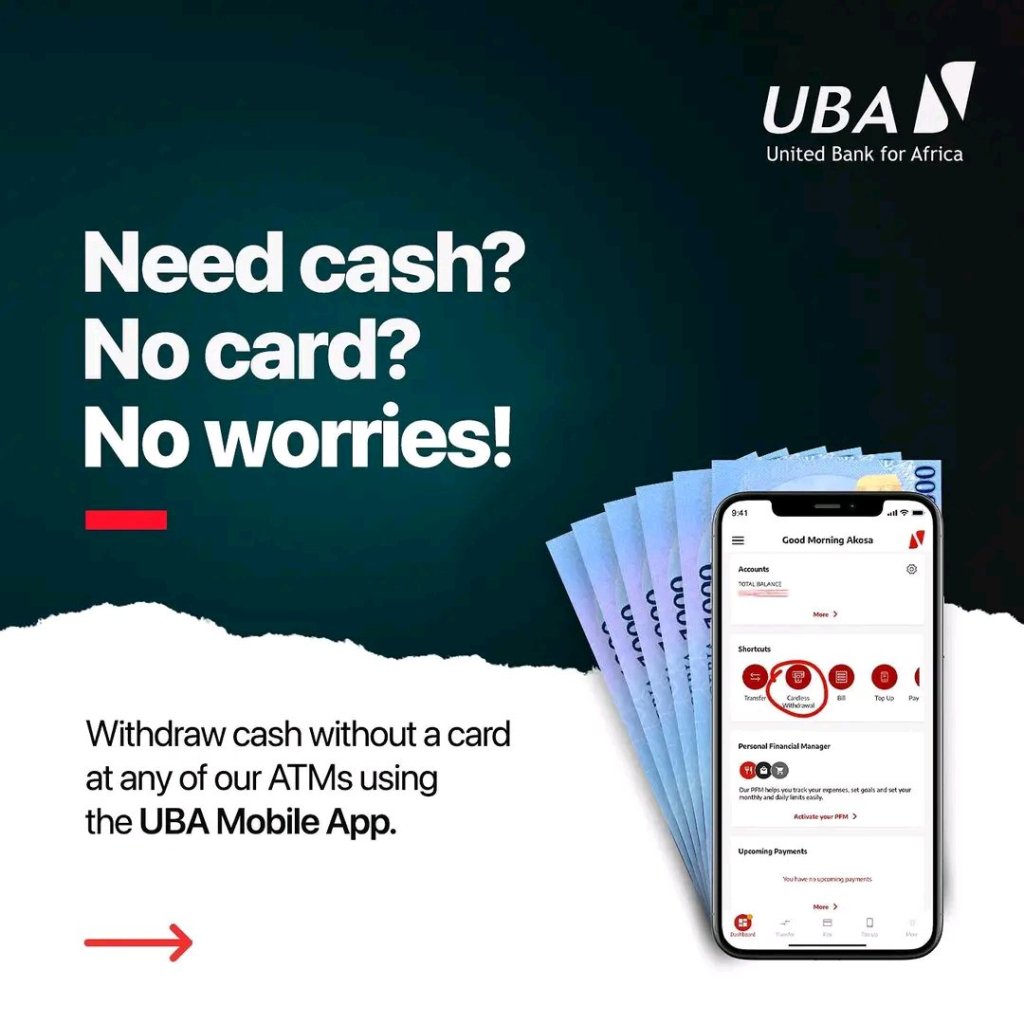 Donβt get stuck this holiday season. Make withdrawals with ease from UBA ATMs without a debit card π§.
